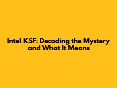 Intel KSF: Decoding The Mystery And What It Means
