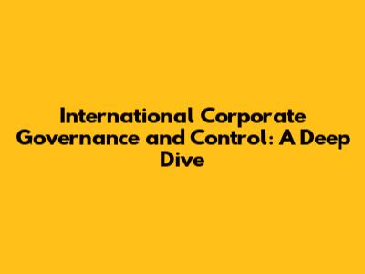 International Corporate Governance And Control: A Deep Dive