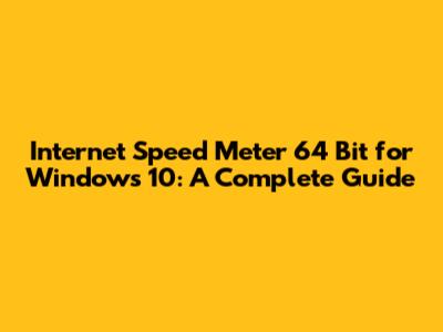 Internet Speed Meter 64 Bit For Windows 10: A Complete Guide