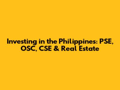 Investing In The Philippines: PSE, OSC, CSE & Real Estate
