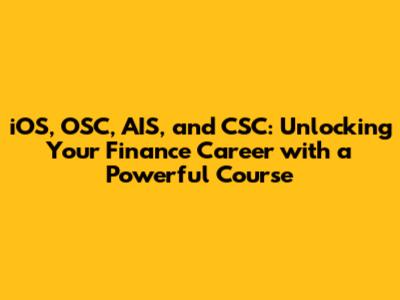 IOS, OSC, AIS, And CSC: Finance Course Deep Dive