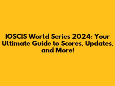 IOSCIS World Series 2024: Scores, Updates & What To Know!