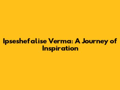 Ipseshefalise Verma: A Journey Of Inspiration