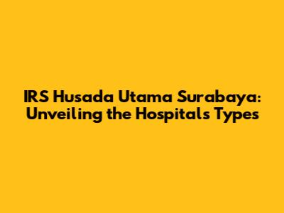 IRS Husada Utama Surabaya: Unveiling The Hospital's Types