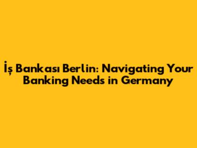İş Bankası Berlin: Your Guide To Banking In Germany