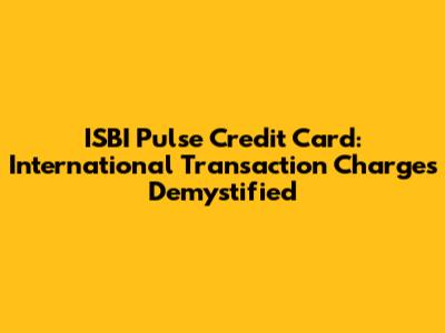 ISBI Pulse Credit Card: International Fees Explained