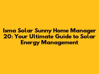 Isma Solar Sunny Home Manager 20: Your Ultimate Guide