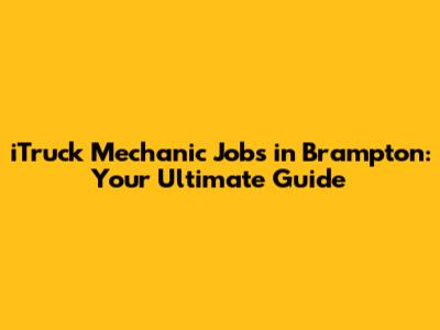 ITruck Mechanic Jobs In Brampton: Your Ultimate Guide