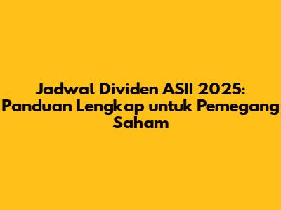 Jadwal Dividen ASII 2025: Panduan Lengkap Untuk Pemegang Saham