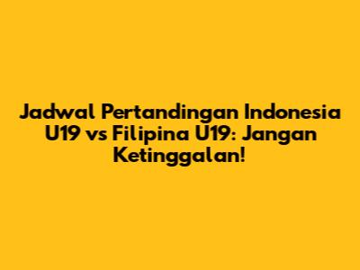 Hey guys, buat kalian para penggemar sepak bola Tanah Air, pasti udah gak sabar kan menantikan laga seru antara Timnas Indonesia U19 melawan Filipina U19? Nah, di artikel ini, kita bakal kupas tuntas semua informasi yang perlu kalian tahu, mulai dari jadwal lengkap pertandingannya, jam tayangnya, sampai di mana kalian bisa nonton langsung. Jadi, pastikan kalian baca sampai habis ya, biar gak ketinggalan momen penting ini! Kita semua tahu kalau pertandingan sepak bola selalu punya daya tarik tersendiri, apalagi kalau melibatkan Timnas kebanggaan kita. Apalagi, pertandingan ini juga menjadi ajang pembuktian bagi para pemain muda untuk menunjukkan kemampuan terbaik mereka di lapangan. Dengan begitu, kita bisa melihat bibit-bibit unggul yang nantinya akan menjadi tulang punggung sepak bola Indonesia di masa depan. Jangan lupa juga, pertandingan ini juga penting untuk mengukur sejauh mana perkembangan Timnas U19 dalam persiapan mereka menghadapi turnamen-turnamen mendatang. Persaingan di lapangan pasti akan sengit, mengingat kedua tim pasti ingin memberikan yang terbaik untuk meraih kemenangan. Jadi, persiapkan diri kalian untuk menyaksikan pertandingan yang penuh dengan aksi dan drama di lapangan hijau!