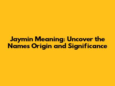 Jaymin Meaning: Uncover The Name's Origin And Significance