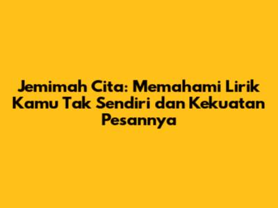 Lagu "Kamu Tak Sendiri" oleh Jemimah Cita adalah sebuah karya yang sangat berharga. Liriknya yang menyentuh hati, melodinya yang indah, dan pesannya yang mendalam, membuat lagu ini menjadi teman setia bagi mereka yang sedang berjuang. Lagu ini mengingatkan kita bahwa kita tidak pernah benar-benar sendirian, bahwa selalu ada harapan, dan bahwa kita memiliki kekuatan untuk bangkit.