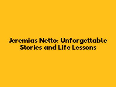 Hey guys! Ever heard of Jeremias Netto? If not, buckle up because you're in for a treat. This article dives deep into the captivating world of Jeremias Netto, exploring the stories that have shaped his life and the invaluable lessons we can all learn from his experiences. We're talking about a journey filled with challenges, triumphs, and a whole lot of wisdom! So, let's get started, shall we?
