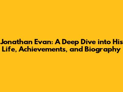 Hey everyone! Today, we're diving deep into the life and accomplishments of Jonathan Evan. Buckle up, because we're about to explore the journey of a truly remarkable individual. We'll be going through everything, from his early beginnings to the incredible achievements that have defined his life. So, without further ado, let's get started!