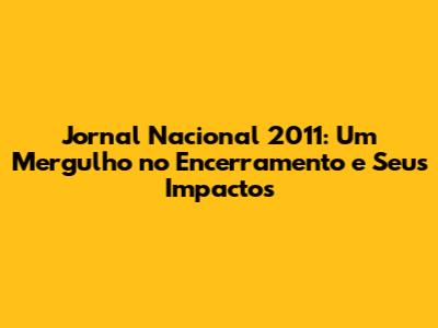 O encerramento do Jornal Nacional em 2011 teve um impacto significativo na sociedade brasileira. O telejornal, com sua ampla audiência e sua credibilidade, era uma das principais fontes de informação para milhões de brasileiros. A forma como as notícias eram apresentadas, as pautas escolhidas e as análises feitas influenciaram a opinião pública e a forma como as pessoas compreendiam os acontecimentos. O jornal, ao abordar os temas relevantes, ao dar voz aos diferentes grupos e ao promover o debate sobre as questões importantes, contribuiu para a formação de cidadãos mais conscientes e informados. O impacto do Jornal Nacional na sociedade se manifestou de diversas formas: na forma como as pessoas entendiam a política, na conscientização sobre as questões sociais e na reflexão sobre o futuro do país. O jornal, com sua cobertura abrangente e suas análises aprofundadas, ajudou a construir uma sociedade mais informada e engajada. O impacto do Jornal Nacional em 2011 foi um reflexo do compromisso do jornal com a informação de qualidade e com a defesa dos valores democráticos. A equipe do jornal se dedicou a apurar as informações, a entrevistar fontes e a apresentar as notícias com rigor e precisão. O impacto do telejornal na sociedade se estende até os dias de hoje, pois as informações e as análises da época ainda servem como referência para entender os desafios e as conquistas do Brasil. O Jornal Nacional, com sua história e sua tradição, continua sendo um dos principais veículos de informação do país, cumprindo o seu papel de informar, educar e inspirar. O impacto do encerramento de 2011 foi a consolidação de um jornalismo comprometido com a verdade e com o bem-estar da sociedade.