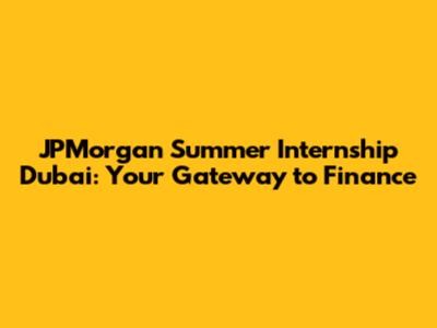 JPMorgan Summer Internship In Dubai: Your Gateway To Finance