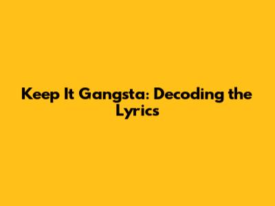 Keep It Gangsta: Decoding The Lyrics