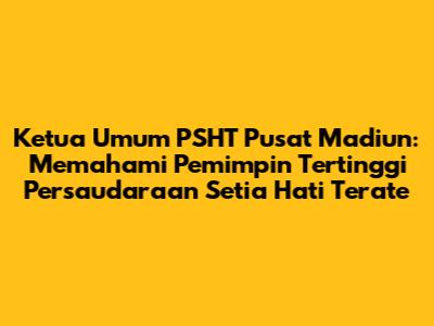 Persaudaraan Setia Hati Terate (PSHT), sebuah organisasi pencak silat yang sangat dihormati di Indonesia, memiliki sejarah panjang dan kaya. Salah satu aspek krusial dalam struktur organisasi ini adalah posisi Ketua Umum PSHT Pusat Madiun. Sosok ini memegang peran sentral dalam memimpin, mengelola, dan mengembangkan PSHT di seluruh dunia. Artikel ini akan membahas secara mendalam mengenai siapa ketua umum PSHT Pusat Madiun, sejarah kepemimpinan, peran pentingnya, dan pengaruhnya terhadap perkembangan PSHT.