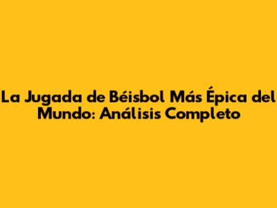 La Jugada De Béisbol Más Épica Del Mundo: Análisis Completo