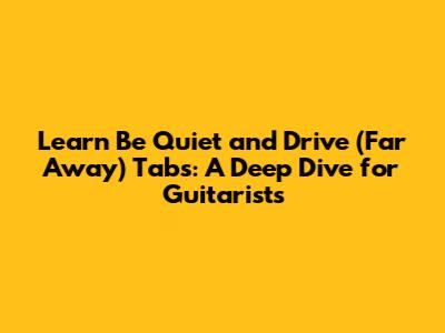 Learning the "Be Quiet and Drive (Far Away)" tabs is a rewarding experience for any guitarist. It offers a chance to explore a song that perfectly blends melody, rhythm, and raw emotion. By breaking down the tabs, understanding the song's structure, and following the practice tips provided, you can learn to play this iconic song with confidence. Remember to be patient with yourself, practice consistently, and most importantly, enjoy the journey. Go on and share your version of "Be Quiet and Drive (Far Away)" with the world. Keep on playing!"