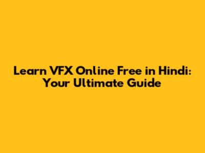 Learn VFX Online Free In Hindi: Your Ultimate Guide