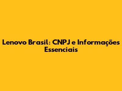 Lenovo Brasil: CNPJ E Informações Essenciais