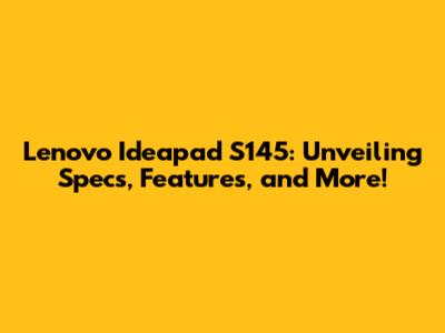Lenovo Ideapad S145: Specs, Features & What You Need To Know