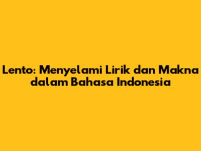 Memahami Lirik Lento: Kata demi Kata