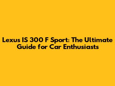 Lexus IS 300 F Sport: Ultimate Guide