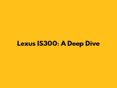 Lexus IS300: A Deep Dive