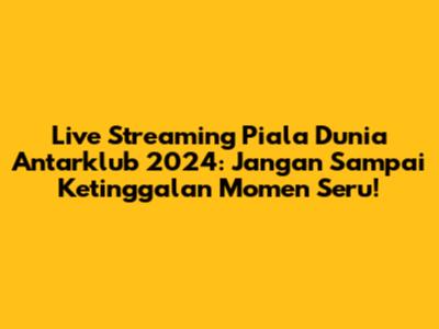 Guys, siap-siap nih buat nonton aksi seru para juara dari seluruh penjuru dunia di Piala Dunia Antarklub 2024! Ajang bergengsi ini bakal menyajikan pertandingan-pertandingan kelas kakap yang pastinya bikin kalian deg-degan. Buat kalian yang nanya-nanya soal link streaming Piala Dunia Antarklub, tenang aja, artikel ini bakal jadi panduan lengkap kalian. Mulai dari jadwal pertandingan, tim-tim yang bertanding, sampai cara nontonnya biar nggak ketinggalan satu gol pun. Jadi, siapkan cemilan, minuman, dan pose terbaik kalian, karena keseruan sepak bola level dunia sebentar lagi dimulai!