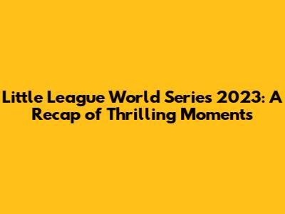 Little League World Series 2023: Thrilling Moments & Highlights