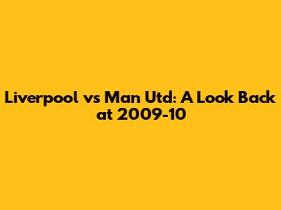 Liverpool Vs Man Utd: A Look Back At 2009-10