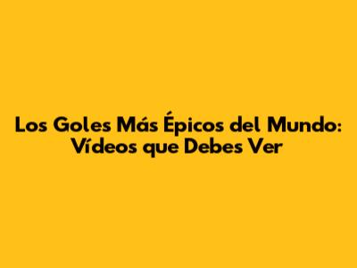 Los Goles Más Épicos Del Mundo: Vídeos Que Debes Ver