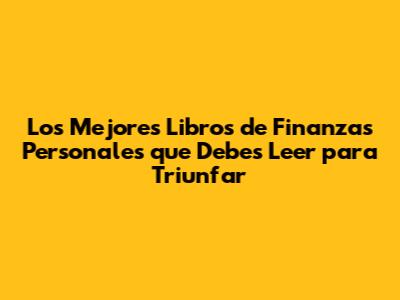 Los Mejores Libros De Finanzas Personales Para Triunfar