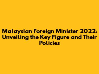 Malaysian Foreign Minister 2022: Key Figure & Policies
