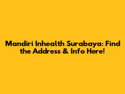 Mandiri Inhealth Surabaya: Find The Address & Info Here!