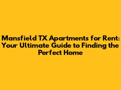 Mansfield TX Apartments: Find Your Perfect Home