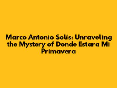 Marco Antonio Solís: Unraveling The Mystery Of 'Donde Estara Mi Primavera'