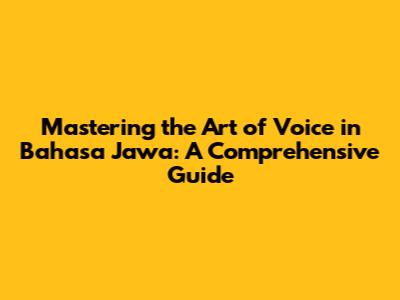 Mastering The Art Of Voice In Bahasa Jawa: A Comprehensive Guide