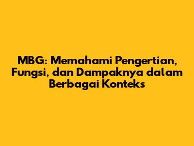 MBG: Memahami Pengertian, Fungsi, Dan Dampaknya Dalam Berbagai Konteks