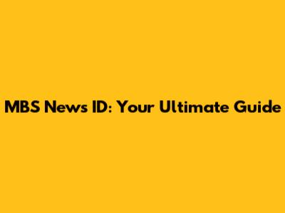 MBS News ID: Your Guide To All Things MBS