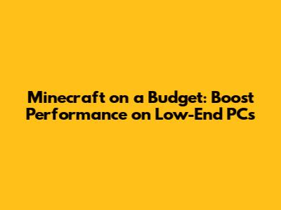 Minecraft On A Budget: Boost Performance On Low-End PCs