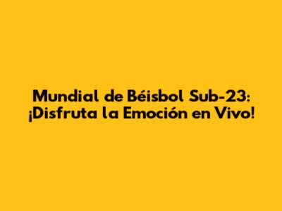 Mundial De Béisbol Sub-23: ¡Vive La Emoción En Vivo!