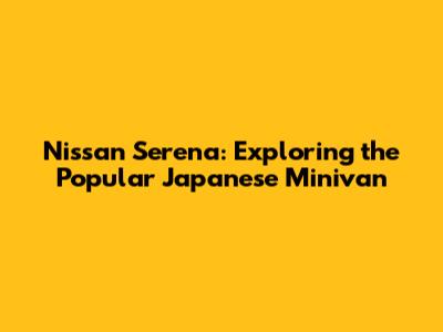 Hey guys! Ever heard of the Nissan Serena? If you're into cool and practical rides, especially minivans, then you're in for a treat. The Nissan Serena is a super popular minivan that's been making waves in Japan and beyond. Let's dive into what makes this vehicle so special, covering everything from its history and features to its different models and why it’s such a hit. So buckle up, and let’s get started!