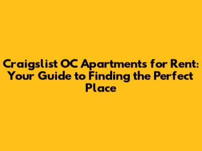 OC Apartments For Rent: Find Your Dream Home On Craigslist
