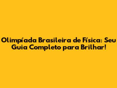 Olimpíada Brasileira De Física: Guia Completo