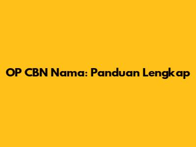 OP CBN Nama: Panduan Lengkap