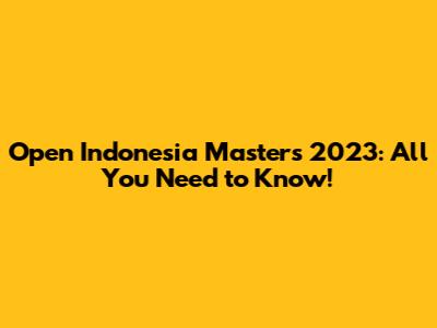 Open Indonesia Masters 2023: All You Need To Know!