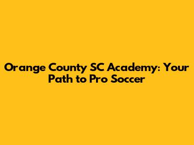 Orange County SC Academy: Your Path To Pro Soccer